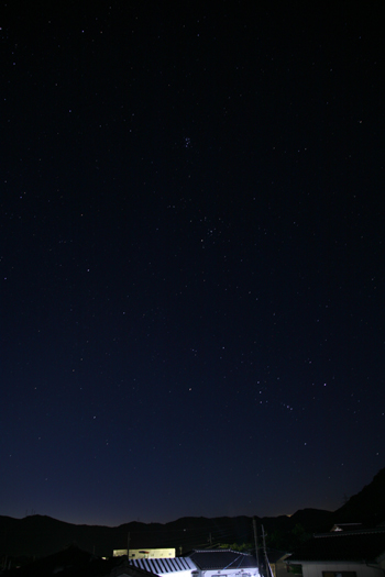 ![]() 真夏に昇るオリオン座(8月9日午前4時頃撮影) |