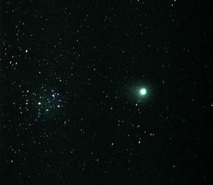 「マックホルツ彗星」 (スバルに接近) 1月8日 200mm望遠 ISO800 3分露出 |
